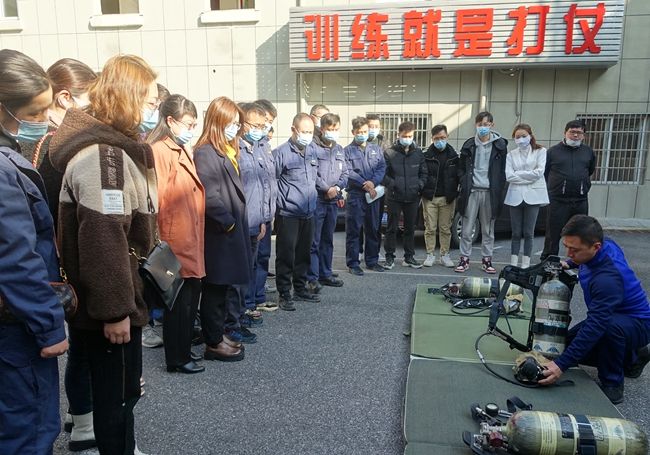 培訓中,消防特勤中隊教官詳細講解了各消防器材的種類、性能、適用火種和操作要領(lǐng),重點演示了干粉滅火器的使用、消防服和空氣呼吸器的穿戴以及消防水帶的使用等,并現(xiàn)場指導港華員工依次進行滅火相關(guān)實操練習。