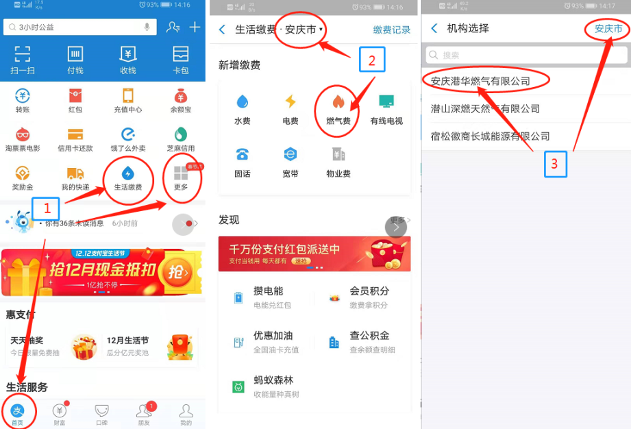 支付寶:打開支付寶,“首頁(yè)”-“生活繳費(fèi)”(或者在“首頁(yè)”-“更多”中選擇“生活繳費(fèi)”),繳納燃?xì)赓M(fèi)或者預(yù)存氣費(fèi)。