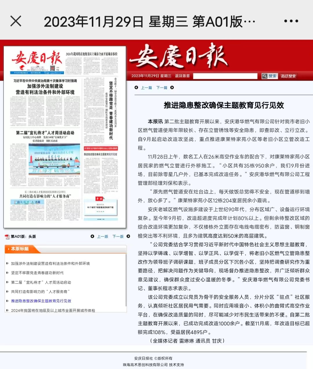 推進隱患整改確保主題教育見行見效(轉載于安慶日報)