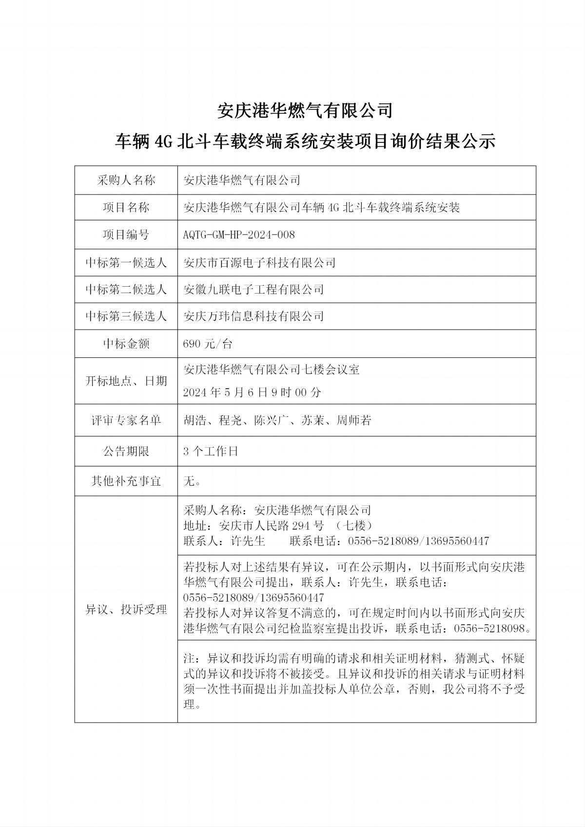 安慶港華燃?xì)庥邢薰拒囕v4G北斗車載終端系統(tǒng)安裝項(xiàng)目詢價(jià)中標(biāo)公示