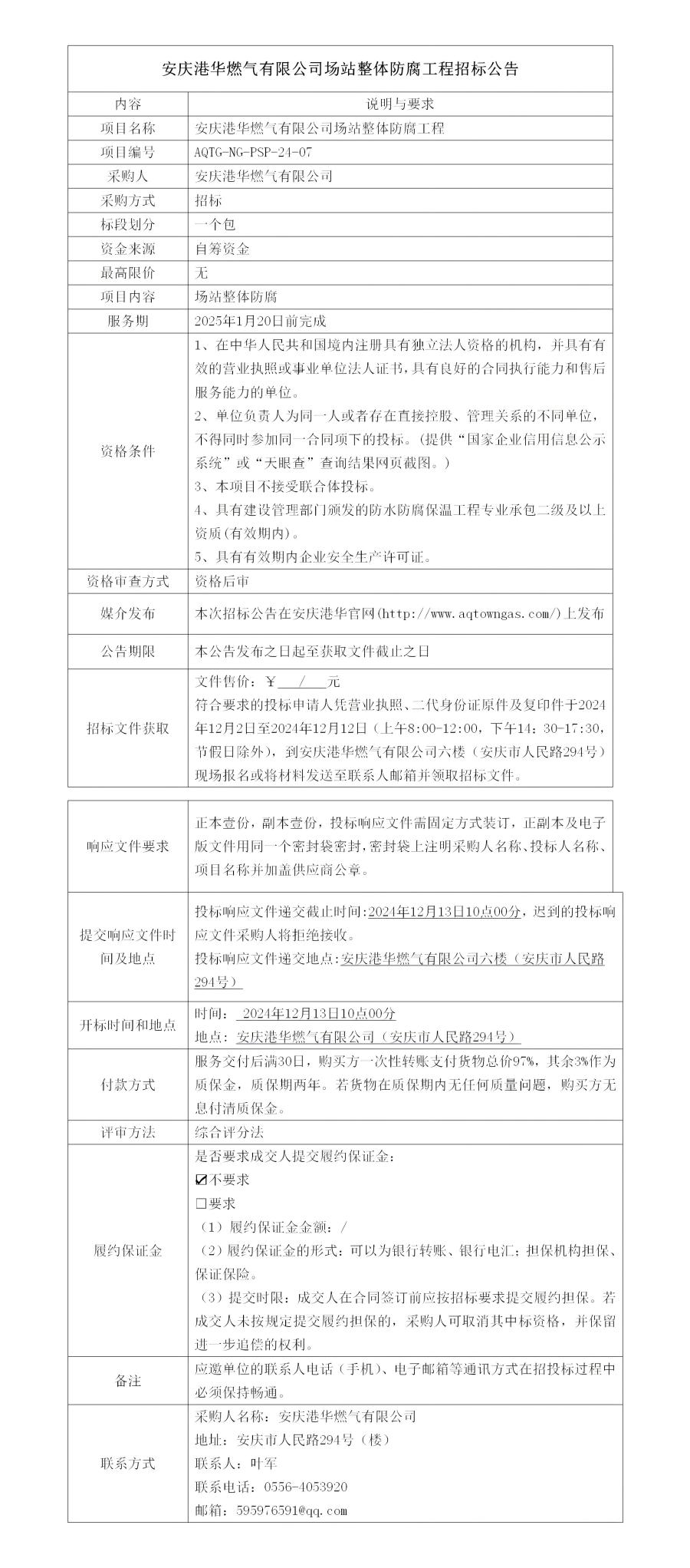 安慶港華燃?xì)庥邢薰緢稣菊w防腐工程招標(biāo)公告