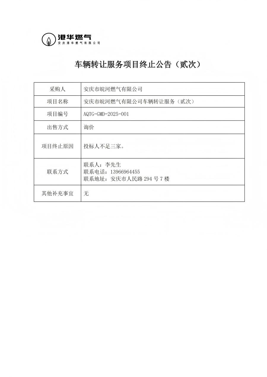 車(chē)輛轉(zhuǎn)讓服務(wù)項(xiàng)目終止公告(貳次)
