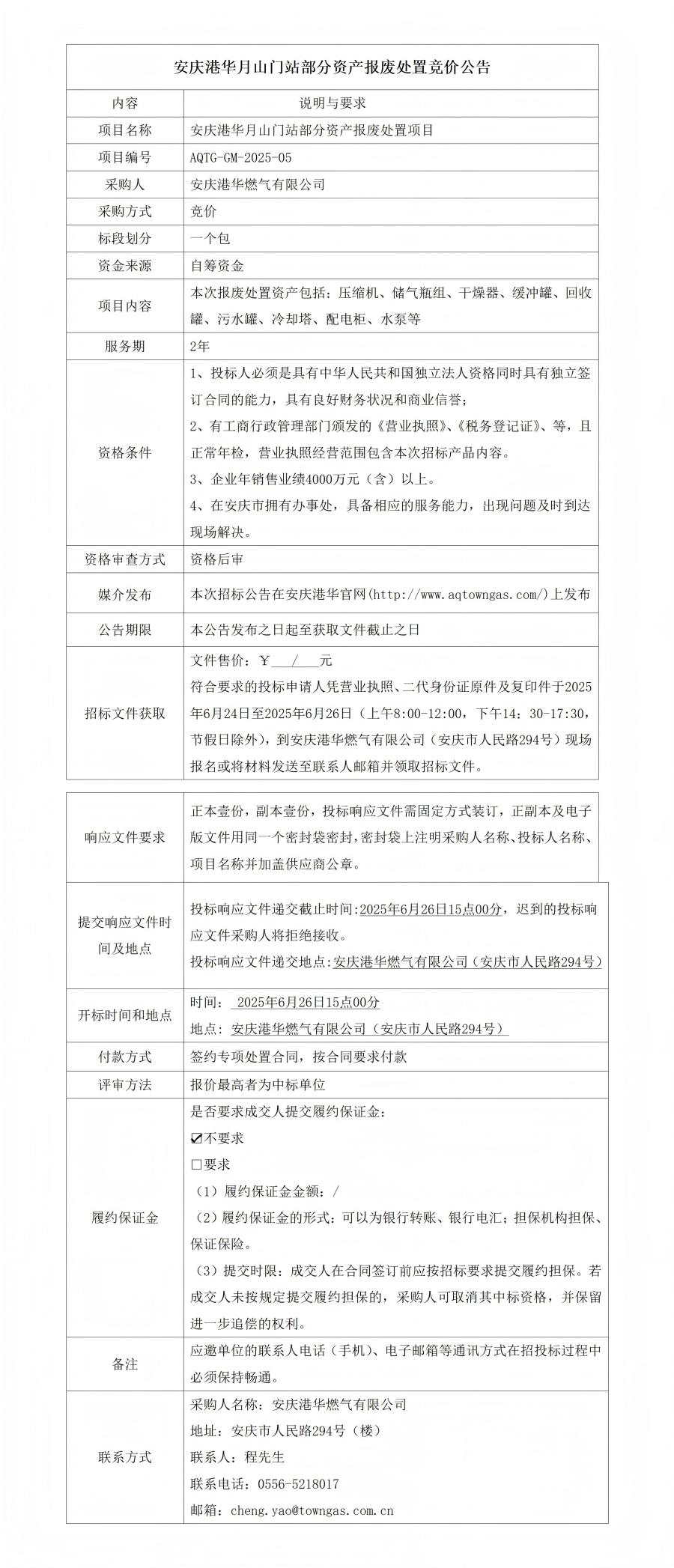 安慶港華月山門站部分資產(chǎn)報(bào)廢處置競(jìng)價(jià)公告