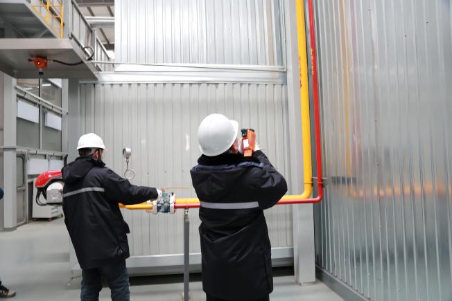 在生產(chǎn)車(chē)間內(nèi),服務(wù)組通過(guò)紅外測(cè)漏儀等探漏設(shè)備對(duì)管道運(yùn)行情況進(jìn)行細(xì)致檢查,逐一查看壓力表和燃?xì)鈭?bào)警器上的相關(guān)信息,確保每一處生產(chǎn)設(shè)備的燃?xì)馐褂冒踩?。在檢查的同時(shí),服務(wù)組還就廠區(qū)內(nèi)燃?xì)庠O(shè)備設(shè)施的實(shí)際情況,與廠房相關(guān)部門(mén)負(fù)責(zé)人進(jìn)行了現(xiàn)場(chǎng)宣講,并表示,無(wú)論遇到任何用能問(wèn)題,都?xì)g迎隨時(shí)來(lái)電反映,安慶港華將第一時(shí)間上門(mén)提供服務(wù)。
